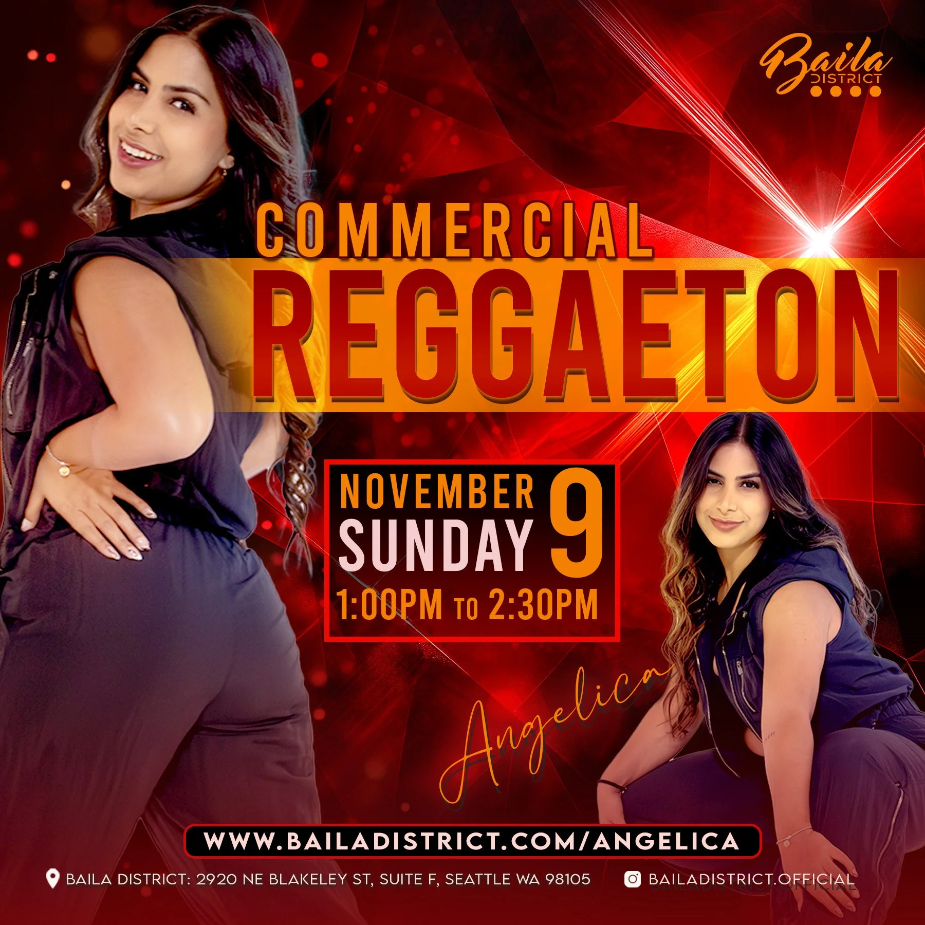 Come explore commercial reggaetón in this open-level workshop with Angelica. In 90 minutes we’ll cover a balance of foundational movement, musicality, and choreography. You’ll learn grooves, isolations, footwork, body rolls, and a short combo you can take home. Expect a warm-up, technique drills, breakdowns, and full runs with coaching and styling tips.
