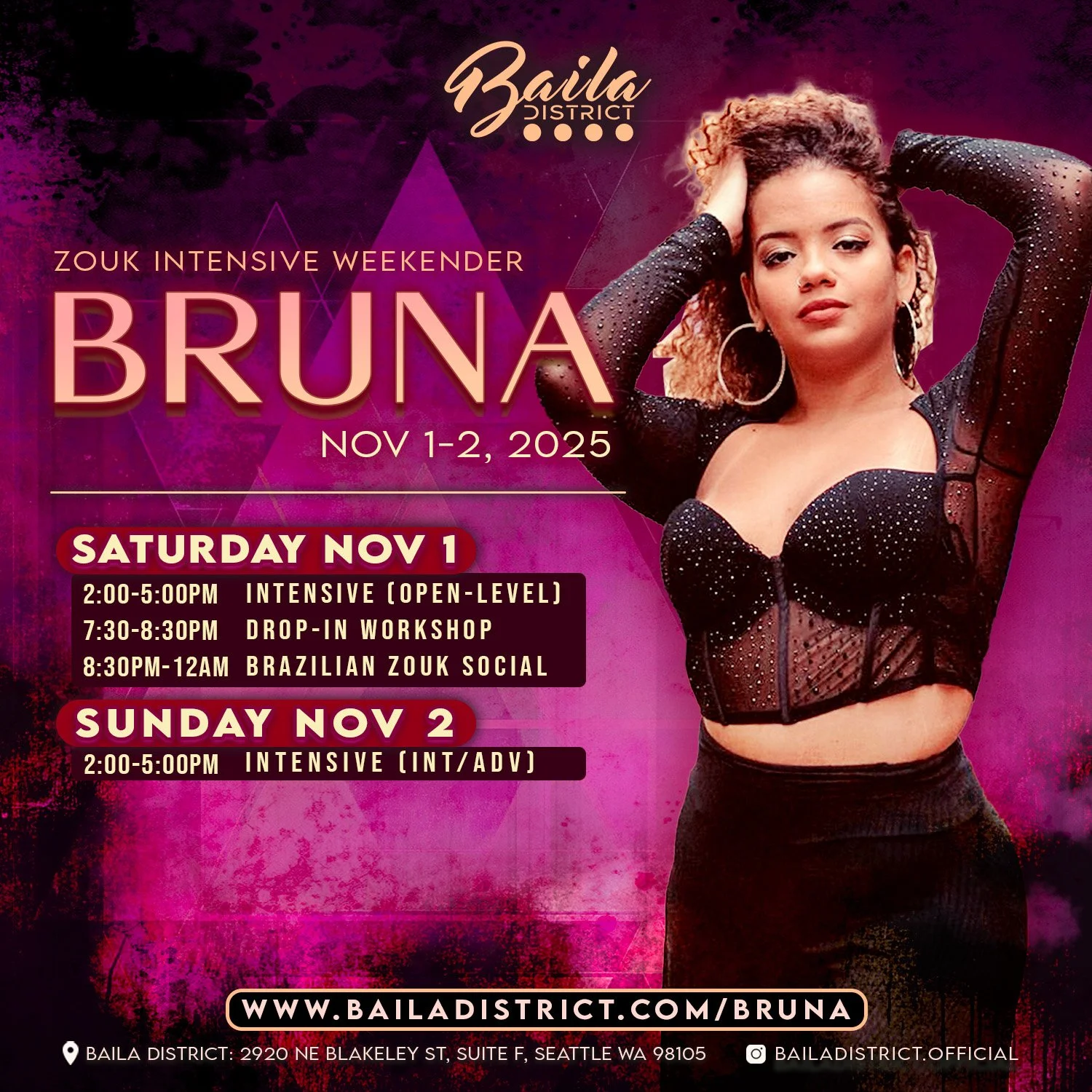 Bruna Peçanha is a world-renowned Brazilian Zouk dancer, choreographer, and instructor who has been dancing since she was four years old and has worked professionally since 2015. With a background in ballet, jazz, tap, modern dance, and samba, she has developed a versatile and soulful style that has captivated audiences worldwide. Bruna has won several Jack & Jill competitions and claimed the title of champion at the 2018 Rio Zouk Congress Professional Championship with her former partner Arthur Nepomuceno. Throughout her career, she has performed and taught at major dance events across Brazil, the United States, Europe, Canada, Mexico, Asia, Australia, and New Zealand. In addition to her teaching, Bruna is one of the organizers of Zouk In Rio and the Rio Zouk Congress, the largest Brazilian Zouk event in Brazil. Known for her inclusive and inspiring workshops that emphasize connection, fluidity, and musicality, Bruna brings the heart of Zouk to dancers of all levels. Come join her workshops and experience the magic of Zouk firsthand.