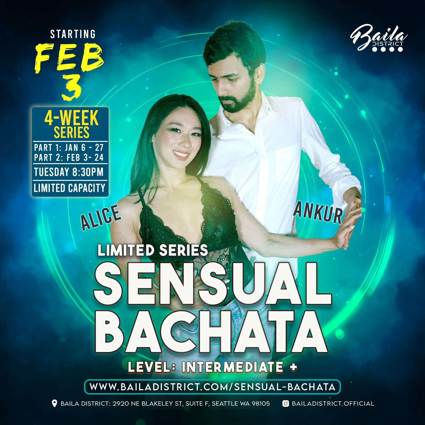 This Limited Series by Alice & Ankur is an intermediate + series with a specific focus meant to work up from fundamentals bachata foundations and techniques to the topics covered for the month. This series is for intermediate advanced dancers with at least 8 months + of Sensual Bachata training. No assessment required.