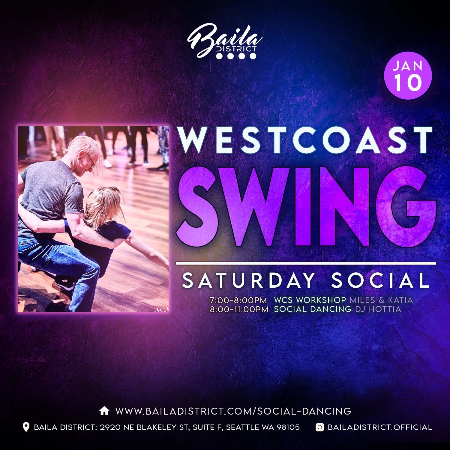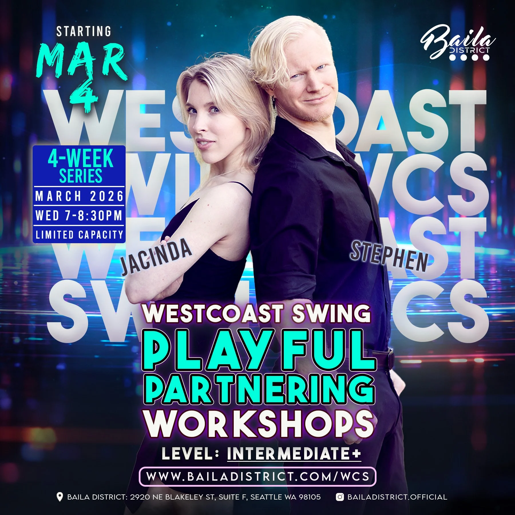 Introducing Baila District Monthly WCS Social Night including lesson and social dancing!