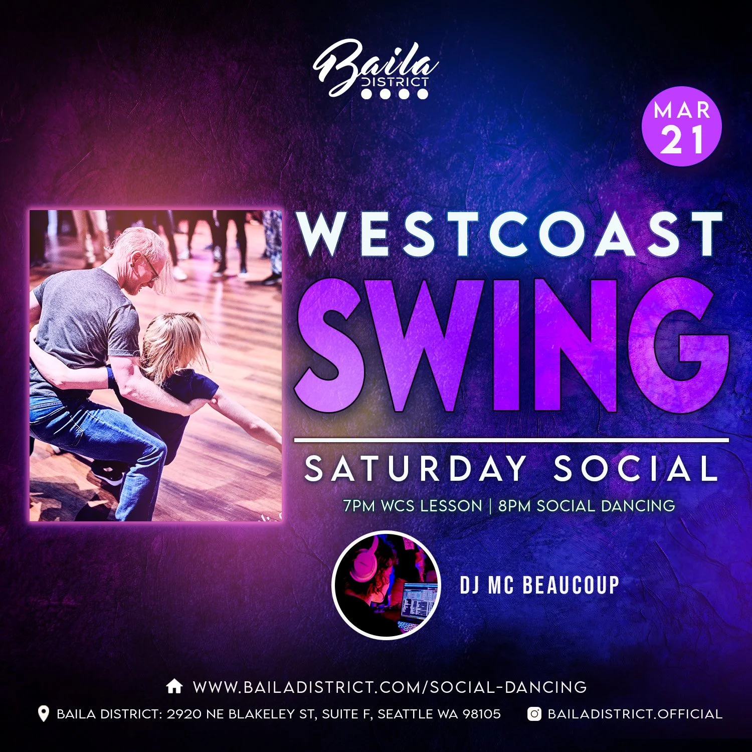 8:00pm-11:00pm Westcoast Swing Social Dancing