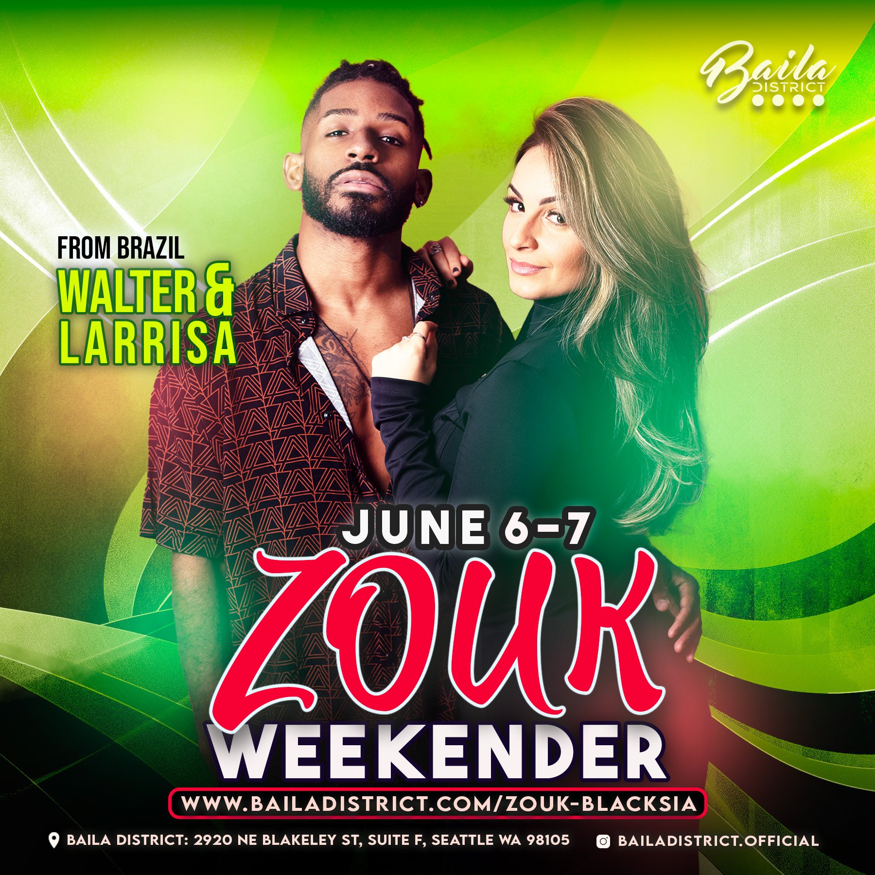 Zouk Weekender with Walter & Larissa from Brazil! 6 hr workshops, 1 night social dancing. Don’t miss it!